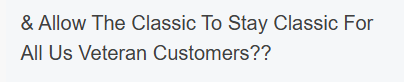 & Allow The Classic To Stay Classic For All Us Veteran Customers??