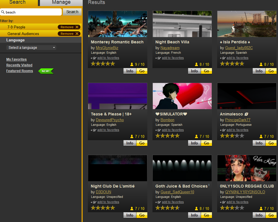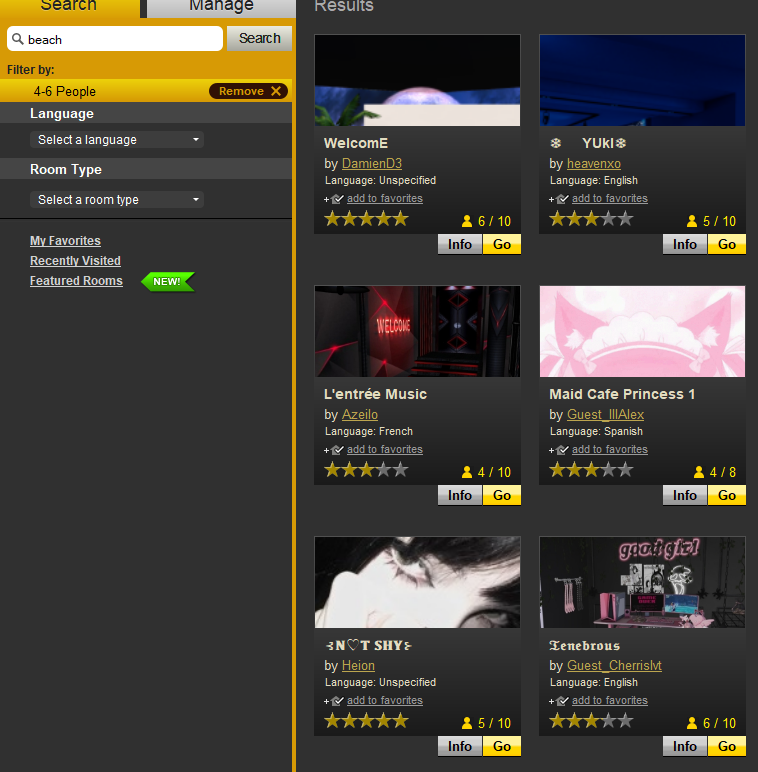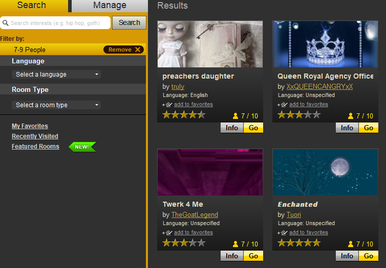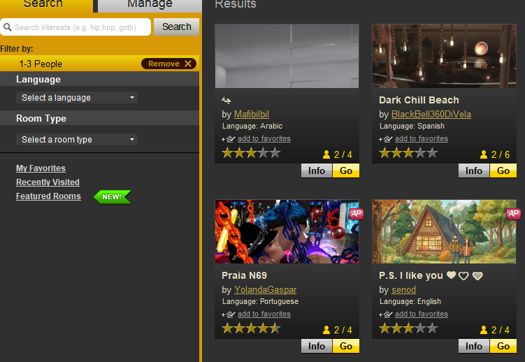 See the image? It's from the classic client, the chat rooms tab: See those choice on the side? Language,Occupancy, Room type?