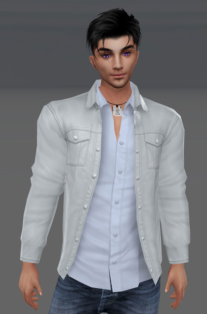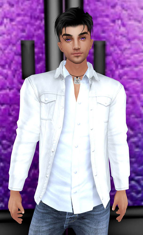 It's the same deal when I made a white shirt. This time I put the normal map, but full black on the shininess map and set the fresnal reflection to 0. Yet in that other room it gets very bright. Same when I see the jacket or shirt in a withmoji.