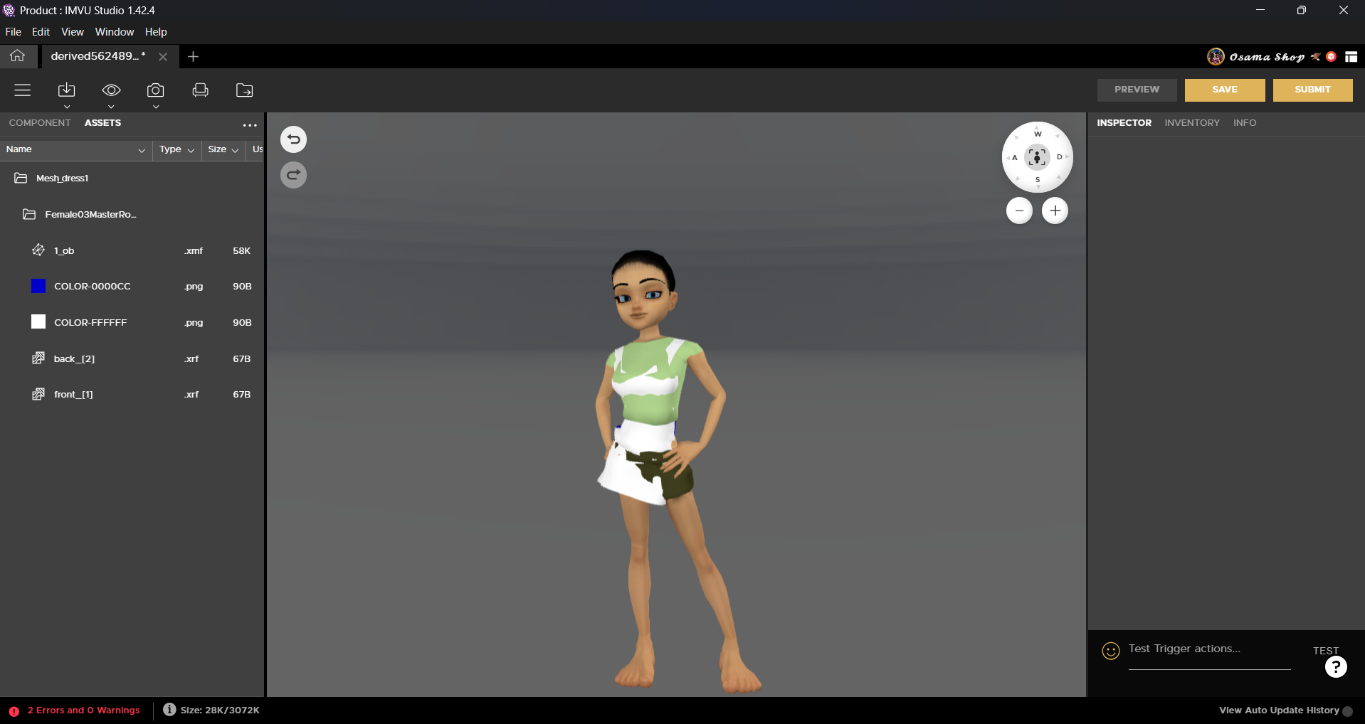 i created a simple dress in marvelous designer and blender using IMVU toolkit 1.2.4