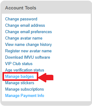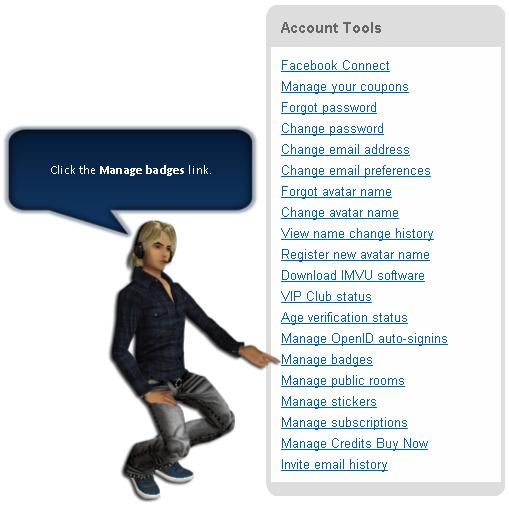 The IMVU Badges feature lets you unleash your creativity in a whole new level by letting you create badges and give them to your friends! Your favorite badges are displayed beside your profile picture across the IMVU website. Badges are the little icons that appear in the grid next to avatar images. They are a great way to express yourself and are a lot of fun to share and collect. You can think of badges as a "friendship pin" on IMVU. Here is some more information about IMVU badges: