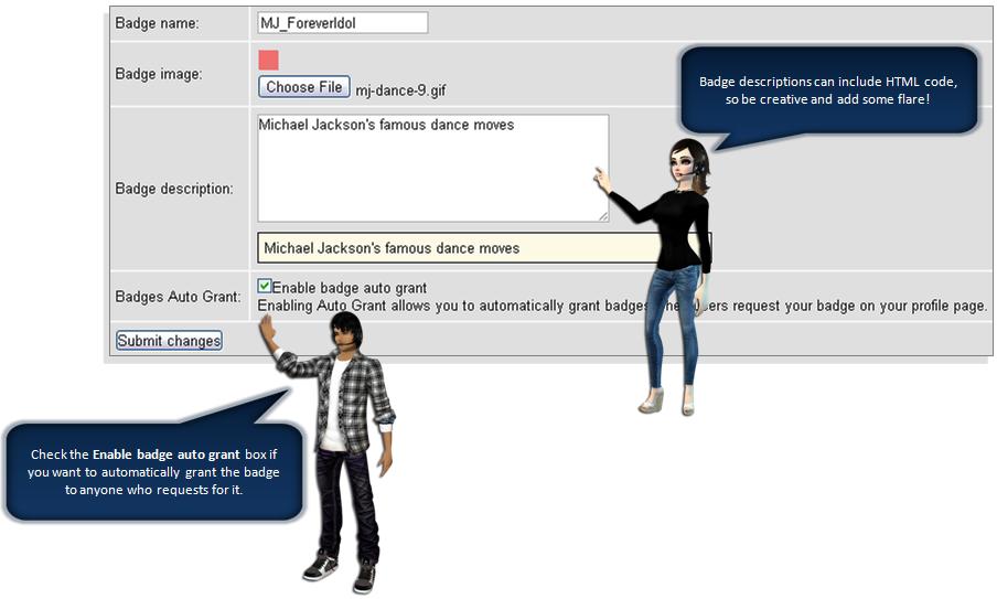 STEP 8: Fill out the Badge description field, and then click the Submit changes button.