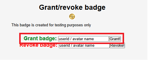 2. This will take you to Your Badges where you can see all the badges you have. To give someone else your badge, click on the Grant/Revoke. Put the User ID or the Avatar name (@username) of your friend to whom you want to give it.