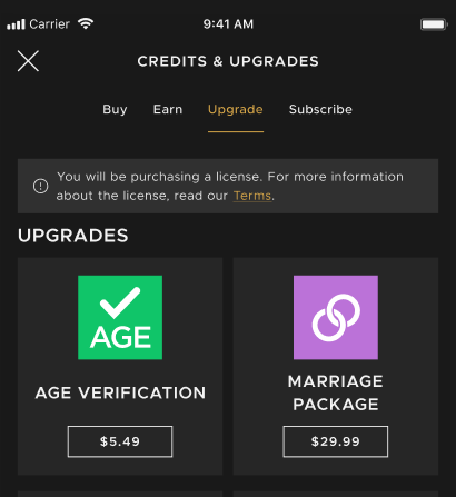 STEP 1: Purchase the Age Verification Token. On the Classic Website, hover your mouse over Credits and click on Buy Credits. In the Upgrades section, check Verify Your Age, then click Checkout. Remember to click No Credits under the Credits column if you do not want credits with your purchase.