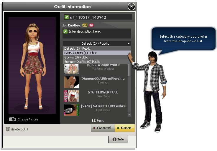 STEP 5: When the Outfit information window appears, click the drop-down arrow, and then select your preferred category.