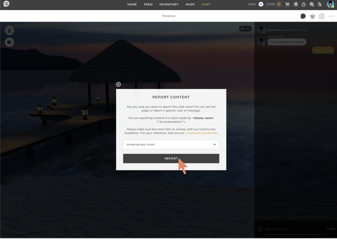 NOTE: IMVU will review the report and take the appropriate action as needed.