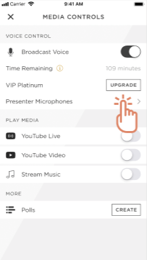 STEP 1. Tap on the Presenter Microphones section under Media Controls.