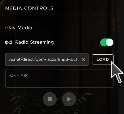 Room Hosts and Moderators can start, stop, and change the station. If a Host or Moderator enables streaming, it will keep playing as long as at least one participant remains in the room. If streaming is disabled, the radio will stop for everyone.