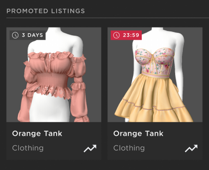 All of your active promotions will appear in the “Promoted Listings” section in IMVU Studio. Each item will display its promotion status, including the time remaining. A countdown timer will alert you when there is only one day left in your promotion.